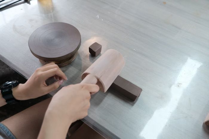 当深褐色的原矿紫砂泥被分发到每个人掌心时,那份冰凉而沉重的触感令强孙利同学感到意外。她一边回忆一边描述初次揉泥的体验,“紫砂泥需要不断揉搓,反复捶打,直到它变得温顺,能在手中塑造出无限可能。”