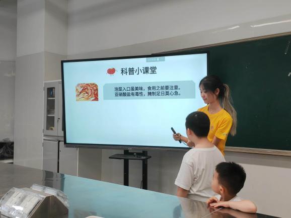 “淋菜入口画美味,食用之前要注意。亚硝酸盐有毒性,神制定日莫心急。”实践团成员改编的儿歌拉开宣讲序幕。针对儿童群体,他们用动画短片演示“变质食物里的小细菌”,并通过玩偶互动讲解“勤洗手的重要性”。面向家长,占福朝副教授解读了《反食品浪费法》条款,并结合近期市场监管部门公布的抽检数据,讲解了“散装食品标签规范”等实用知识。