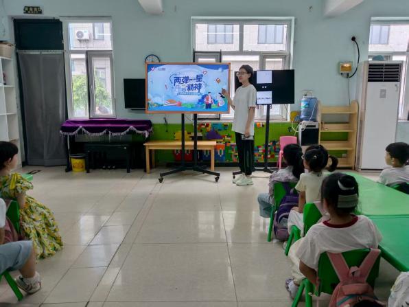 7月12日,实践团成员前往江苏省无锡市惠山区杨市社会服务站,为当地小学生开展了“两弹一星”精神主题宣讲活动,深受小听众们的欢迎。