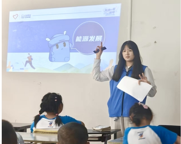 图为实践团成员为孩子们讲解核能。张春瑶摄
