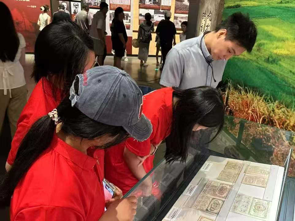 图为调研团队成员参观红色金融票证。刘元竹供图