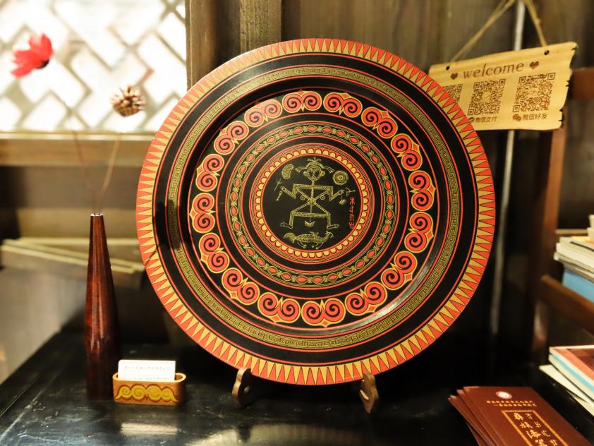 7月7日上午,实践队抵达西昌市建昌古城,拜访彝族漆器省级传承人吉伍五呷老师并展开座谈交流。在吉伍五呷老师的热情接待下,队员们参观了吉伍家族漆器工坊。吉伍五呷老师详细讲解了彝族漆器传承千年的历史脉络、独特的黑红黄三色文化寓意以及繁复精湛的髹饰工艺流程。