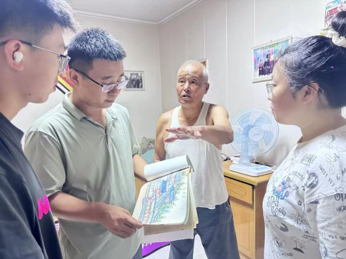 图为队员们与书记在老党员王合平家进行采访。魏佳 供图