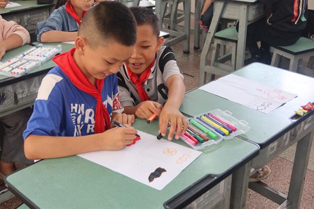图六 孩子们在纸上绘制情绪四宫格 林山豪摄
