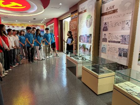 (图为山东理工大学“红脉润溪”实践调研团参观三涧溪展览馆)