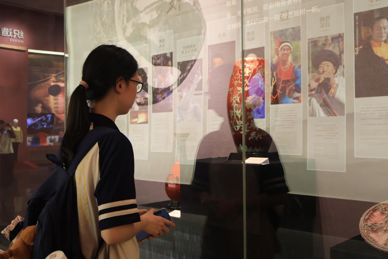7月10日下午,实践队成员前往成都市非遗博览园,参观四川省非遗馆,全面了解了四川省的代表性非遗项目,体会到非遗传承与创新的活态发展过程,也感受到非遗与市民文化生活的密切联系。