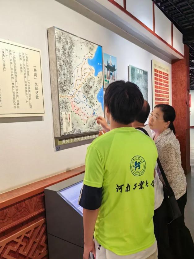 随后,团队前往郑州市黄河博物馆学习。在了解黄河博物馆承载的文化与治理历史后,团队成员将电气工程、智能控制等领域的核心概念融入博物馆展陈讲解,介绍 “绿色电力开发助力黄河生态系统可持续保护”“现代智能水利设施中电气自动化与传感技术应用” 等内容,吸引了大量游客驻足聆听。团队还设计并现场发放关于 “黄河流域环境保护协同推进与智能电网创新发展” 的专题调查问卷,收集社会各界意见和诉求,为后续研究与实践提供参考。
