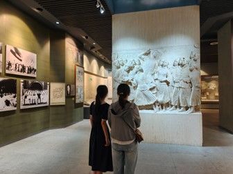 实践次日,团队转赴江苏省徐州市,角色从参观者转变为主动的“宣讲者”。在巍峨的淮海战役烈士纪念塔前,面对镌刻着543位烈士姓名的碑壁,成员们深感宣讲责任之重大。在淮海战役纪念馆,每一件展品都在诉说着军民同心、人民伟力的故事。下午,团队探访渡江战役总前委旧址,站在那盏旧煤油灯和老式电话机旁,向听众生动描绘革命家们在此运筹帷幄、决胜千里的历史瞬间。为了完成从“看”到“讲”的转变,成员们深入查证资料、提炼故事,将静态的历史转化为动态的叙述,向游客宣讲生动的往事与红色精神,同时,团队成员自身也对“信仰”与“忠诚”有了更深层的体悟。