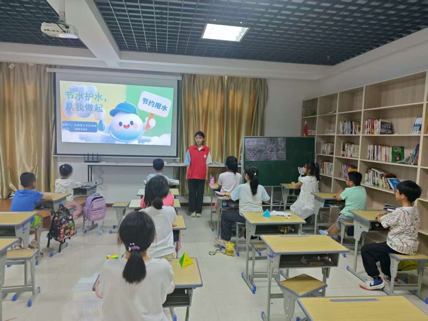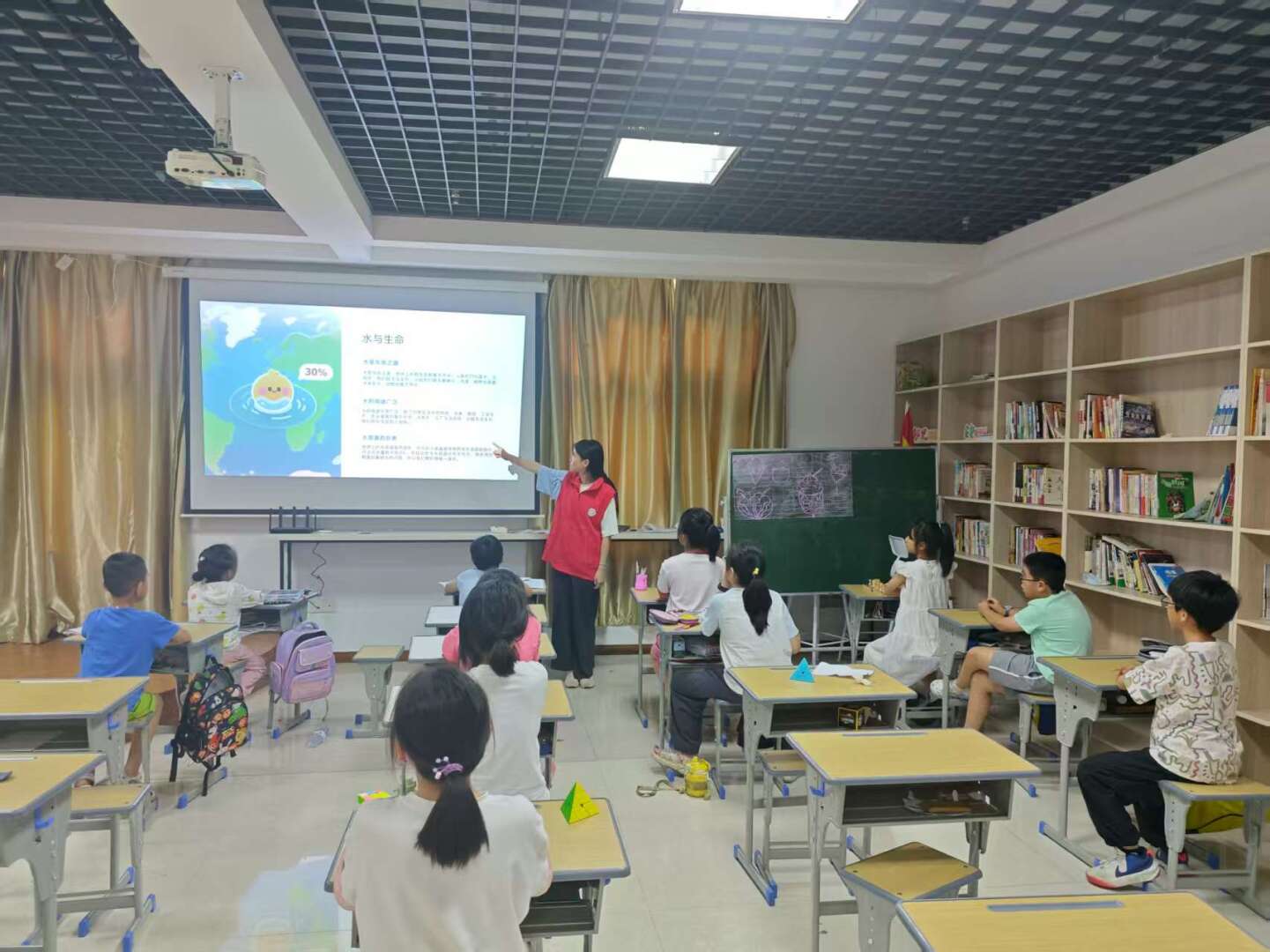 队员结合所见所闻,后续来到南通市永兴社区暑托班,队员胡涵不仅向小朋友们生动讲解“国家水网”与“身边节水”的紧密联系,还介绍了保护水资源的有效方法,最后发放宣传册,呼吁大家从拧紧每一个水龙头做起,珍惜这来之不易的南水。小朋友们听后表示:“原来我们用的水背后有这么多的科技和心血,以后一定更加珍惜。”