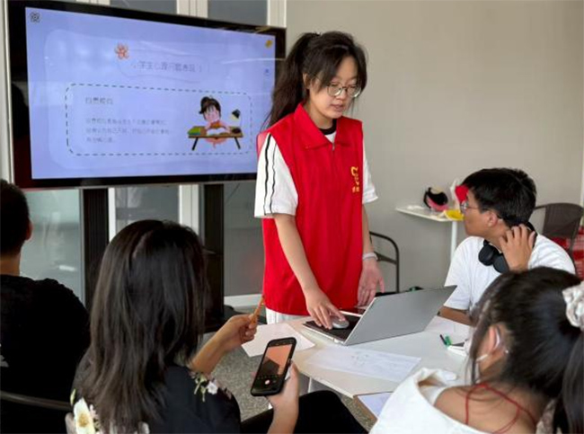 8月20日,为切实关注青少年心理健康发展,帮助同学们掌握科学的心理调适方法,增强心理韧性,团队成员奔赴盐城市阜宁县阜有诗书活动中心,开展了“阳光心灵,青春同行”心理健康知识宣讲活动。实践团队队长贾晶棱结合青少年的学习生活实际,围绕“常见的心理困扰”“情绪管理小技巧”“如何建立良好人际关系”“寻求帮助不丢人”等主题进行深入讲解,引导同学们关注情绪变化,学习心理调试方法。
