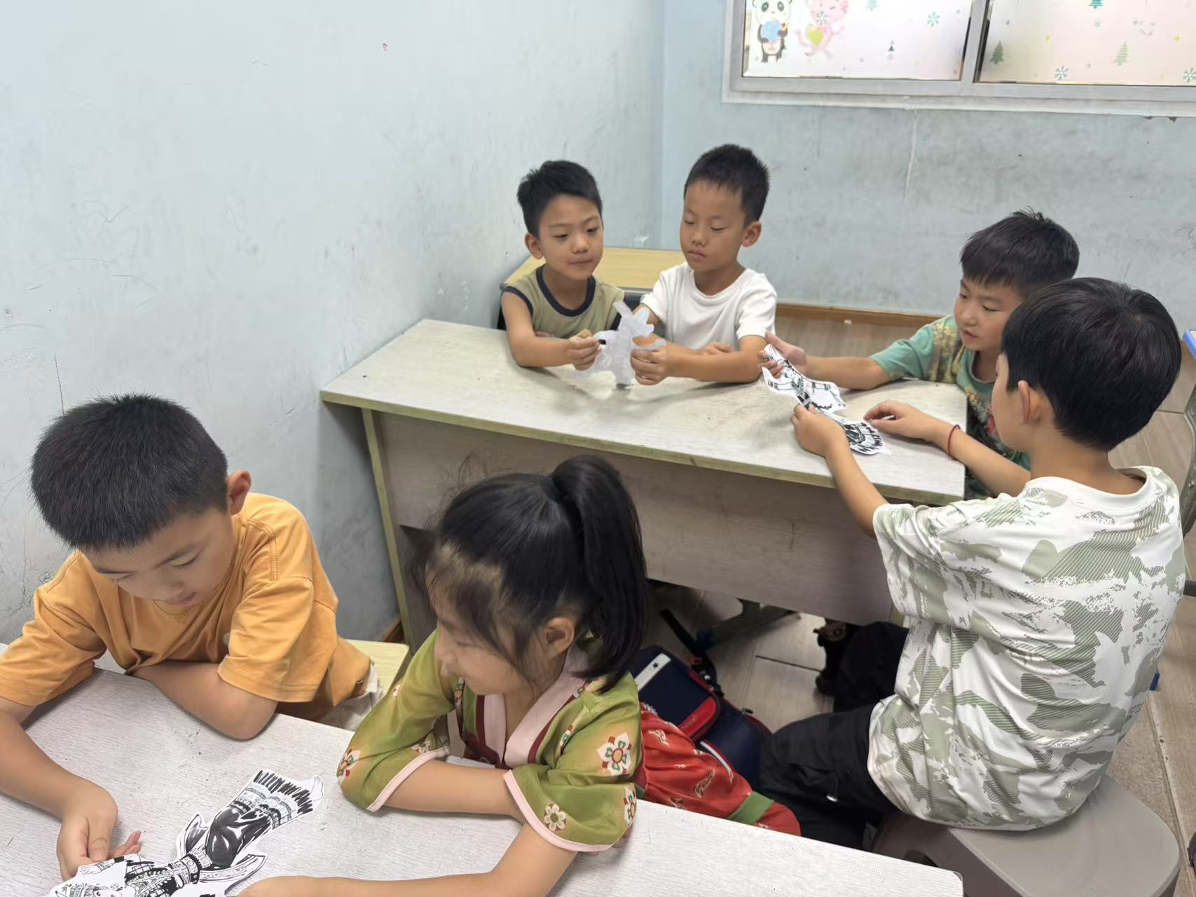 随后,志愿队组织手工制作活动。引导孩子们依据高山族服饰上典型的几何纹、动物纹,发放彩色纸张、彩笔、剪刀、胶水等材料,鼓励孩子们充分发挥想象力与创造力,制作简易高山族头饰和服饰模型。过程中,孩子们或专注勾勒图案,或相互交流创意,将对文化的认知转化为亲手创作的成果 。