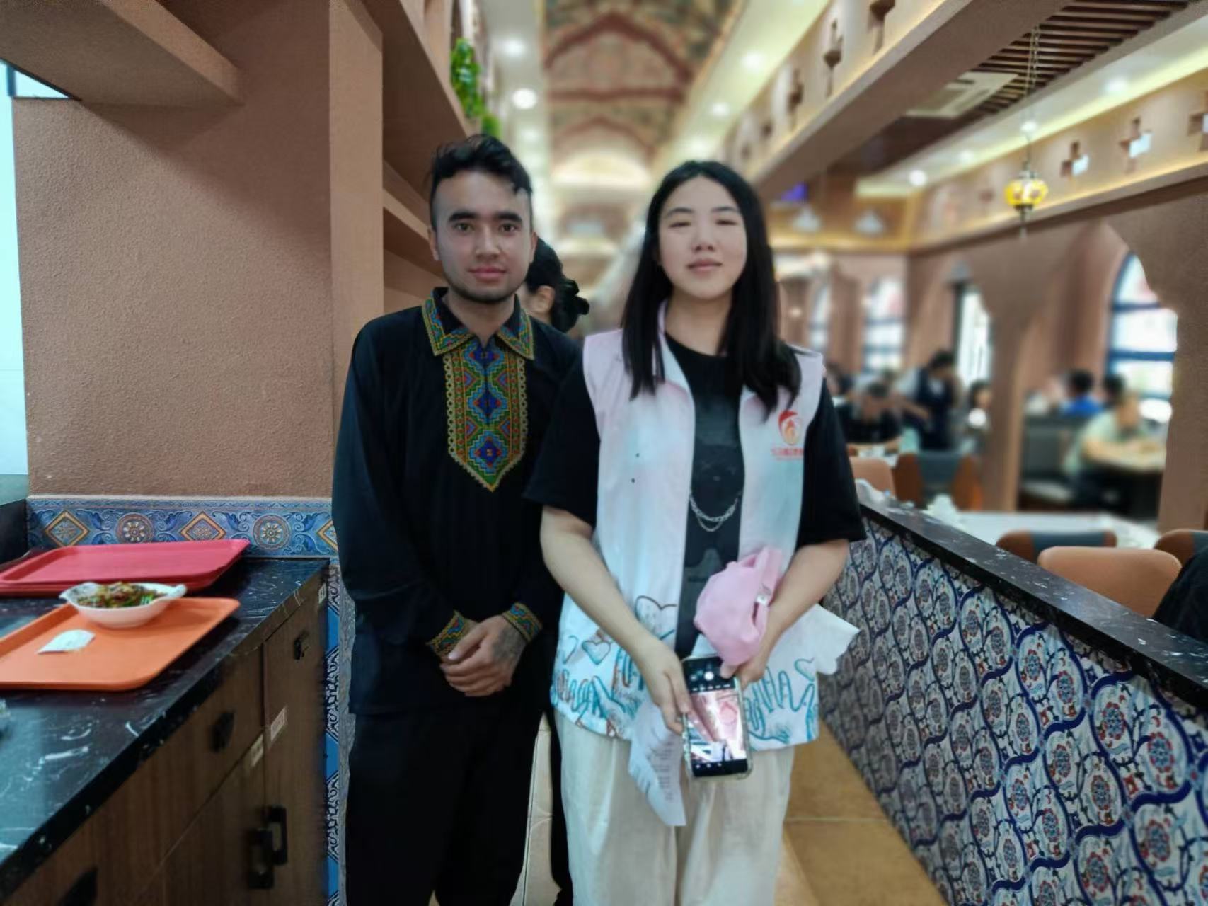 实践过程脉络清晰,层层深入。志愿队员首先对餐馆经营者及维吾尔族店员进行了系统访谈,细致了解其创业历程、菜品特色及文化坚守;随后亲身体验了抓饭(“波罗”)、烤包子、馕、曲曲儿及烤羊肉串等新疆传统美食的制作与风味,直观感知其食材选用与烹饪智慧;同时面向餐馆顾客与周边居民展开问卷调查,广泛收集内地消费者对新疆饮食文化的认知与接纳度信息。
