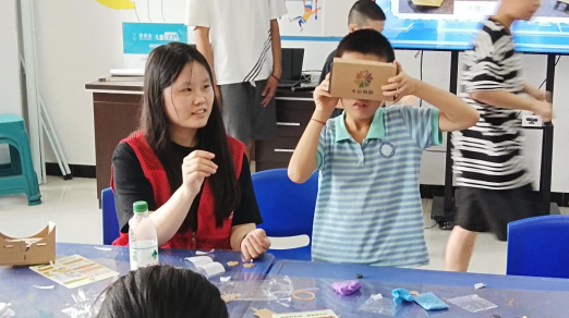 图为小朋友佩戴使用制作完成的VR眼镜。周明杰摄