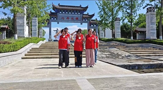 图为队员们在南水北调中线工程移民纪念园前宣誓守井人誓词场景
