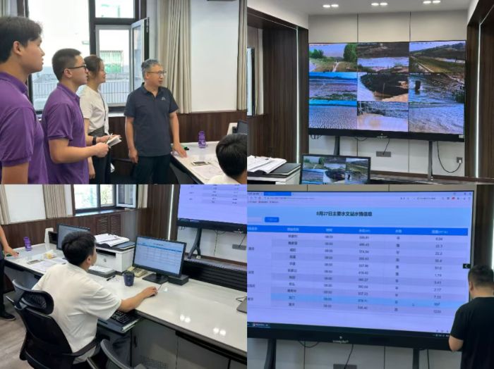 跟随着技术人员的脚步,实践队参观了集水情实时监控、标准化机房与智慧平台于一体的现代化中枢。巨大的电子屏幕上,渭河、泾河、北洛河、黄河等主要河流的站网分布、实时画面及水位、流量等关键数据一目了然。水文中心汪总工介绍道:“通过引入数字孪生、大数据分析等先进技术,我们构建了全方位、全天候的精准监测体系。如今,预警决策更加高效智能,为防洪减灾赢得了宝贵时间。”队员们赞叹不已,纷纷表示:“以往在课堂上听闻‘智慧水利’,今日得见其实战应用,才真正体会到科技赋能带来的巨大变革。”