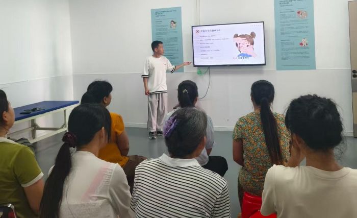 活动现场气氛热烈,工友们积极提问,尤其对如何在长时间缝纫工作后合理使用手机、缓解眼部酸胀等实际问题表现出浓厚兴趣。实践队员陆顺天表示:“产业工人是推动社会发展的重要力量,他们的眼健康同样需要关注。我们希望通过通俗易懂的方式和实用的技巧,帮助工友们在使用手机放松娱乐的同时,也能有效保护视力,享受更清晰舒适的生活。”