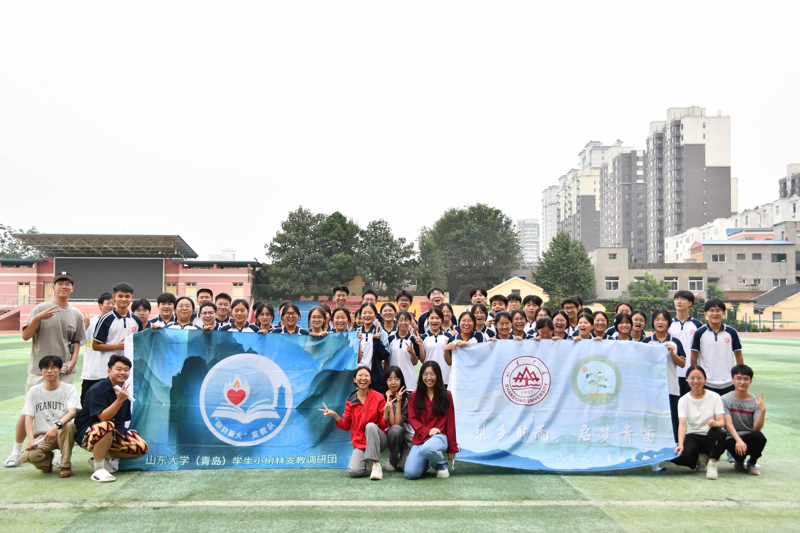 青苗支教队和聊韵薪火支教队的队员们特意策划了一场充满欢声笑语的破冰活动。在阳光明媚的操场上,队员们带领着冠县一中4班与8班的同学们开启了一场别开生面的互动游戏。