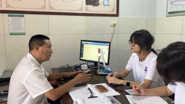 在乐园村卫生室,实践队成员与有着35年行医经验的李发从村医进行深度访谈。李发从作为中国合作医疗第三代传承人,肩负村卫生室负责人与合作医疗纪念馆馆务员双重职责。李医生详细介绍了新型农村合作医疗在本村的实施情况,他表示:我们落实医疗保障措施,所有脱贫人口均参加了城乡居民基本医疗保险,全村参保率达到100%,极大减轻了群众就医负担。从日常诊疗到公共卫生服务,李发从用几十年的坚守诠释了基层医者的责任与担当,为医学生树立了扎根基层、服务百姓的榜样。
