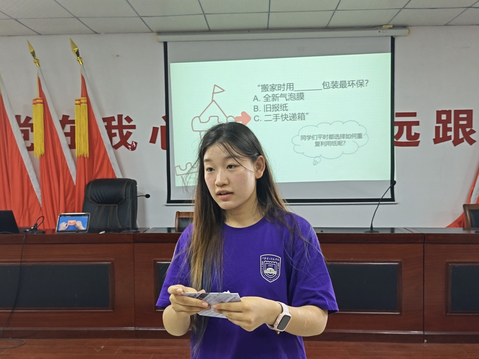 团队注重环保知识的普及与推广,面向不同群体开展精准化、场景化宣讲。在蟹塘社区居家养老服务中心,志愿者从老年人日常生活的实际出发,详细讲解垃圾分类的重要性,结合乡村环境特点,强调垃圾分类对健康生活的积极影响。宣讲内容贴近生活、通俗易懂,增强了老人们的环保意识和参与感。