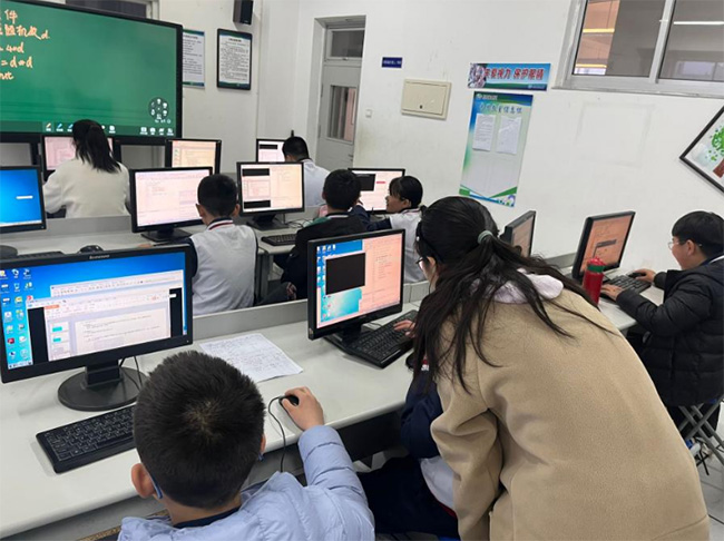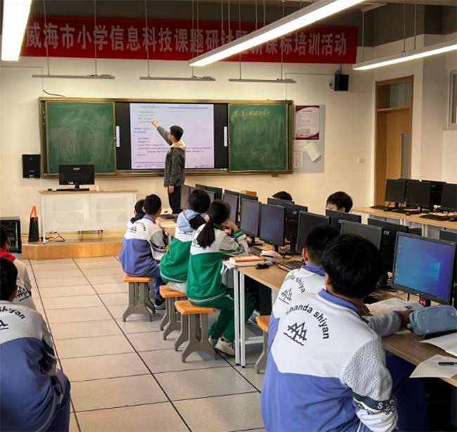 图为趣味编程进校园实践队在高区一小和山大实验中学授课