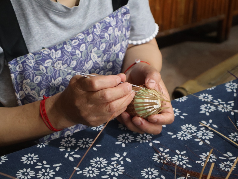 图:竹编艺人正在进行编织
