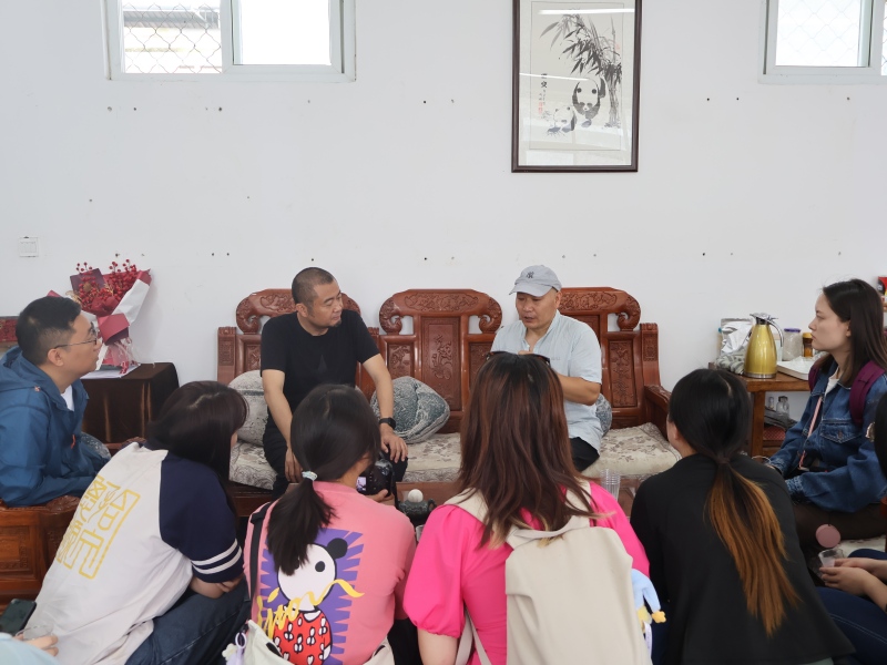 7月12日上午,实践队聚焦“小众”非遗,前往宝兴县穆坪砚制作技艺传承基地,与县级传承人李大刚交流调研。队员们近距离观察外郎石的独特质地与色彩,了解穆坪砚的历史与“随形就势”的制作工艺;听取李大刚介绍穆坪砚当前面临的人才短缺、工业化冲击、市场萎缩等困境,以及其通过开发熊猫砚、故宫系列文创,推进“非遗文化研学服务体”建设,为非遗寻找现代出路的探索。