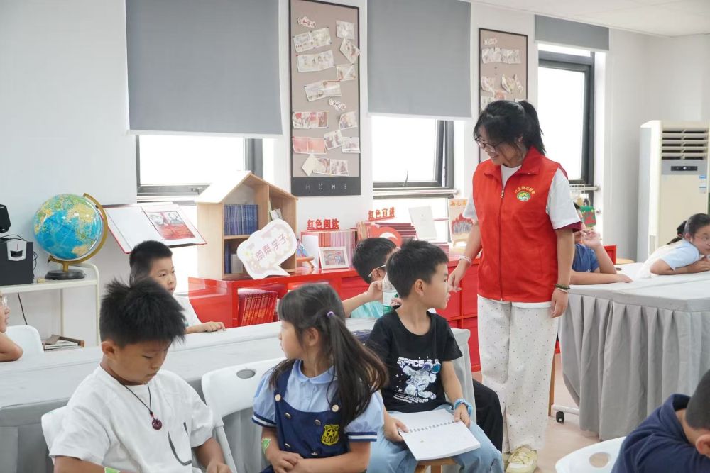 图为团队成员协助社区孩子完成对话模拟秀环节。 裴春蕾 陈天乐供