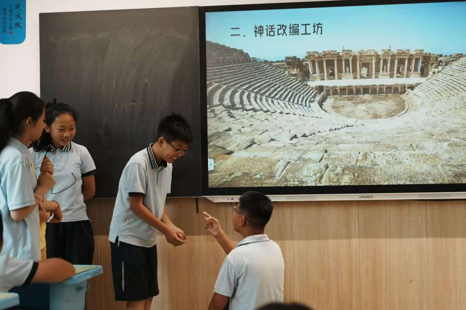 “西西弗斯的人生真的毫无意义吗?我们能否为他找到意义?”老师为学生们提供了三个“拯救锦囊”,化身“神话改编者”的学生们立刻沸腾起来。有学生设计西西弗斯和死神签订契约借用死神的力量和宙斯对抗;有人提议他联合其他受罚者,用集体行动争取规则的改变。他们的核心思考是:反抗的意义不在于“赢”,而在于拒绝被动接受“无意义”。还有的学生脑洞大开:西西弗斯提出“用帮人们干农活”或“将推石变成测量山体变化的科研任务”代替推石上山的任务,让惩罚转化为有价值的工作。他们意识到:谈判的本质是为无意义的任务赋予新的目标。最令人惊喜的创意来自“苦中作乐”组,他们说西西弗斯可以在推石时观察小动物,在石头上画画,做一个动物观察笔记;有人想到他可以记录每次推石的感受,最终写成“推石手记”;还有人设计西西弗收养一只小仓鼠,将巨石变成仓鼠的跑轮。这些想法背后,是对“意义”的全新理解:当外部无法改变时,内心的态度能重塑一切。每个改编版本都充满少年人的锐气与真诚,原本“绝望”的神话,在学生们的创意中生出了“希望”的嫩芽。