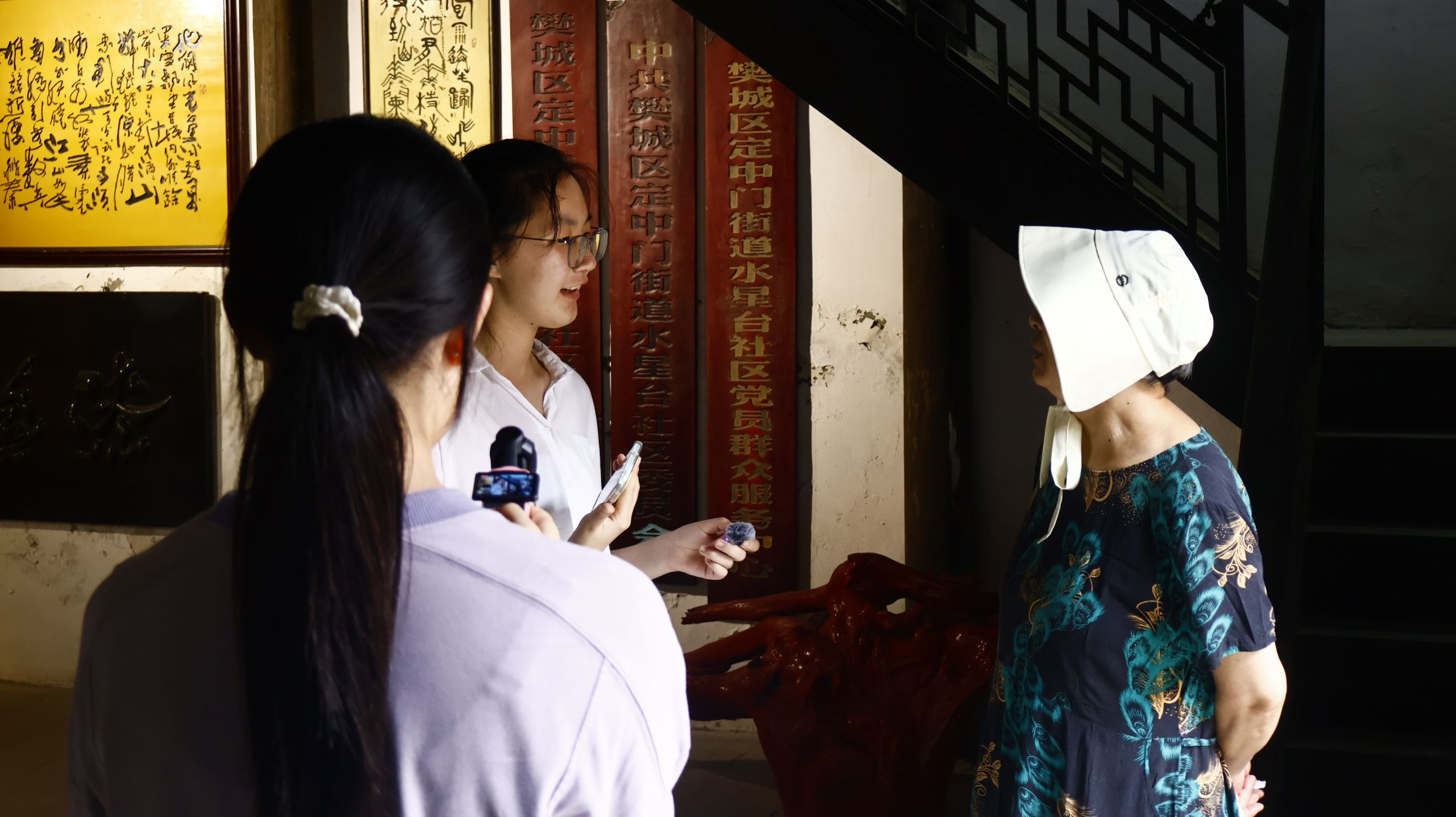 (图为漆彩阳光实践队采访隗鹏老师。汪诗晴 供图)