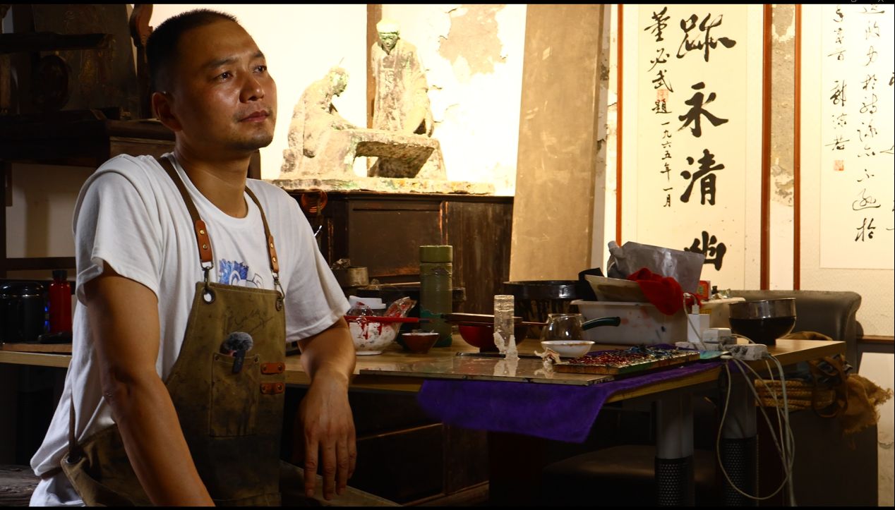 为更全面把握襄阳漆器的传承现状,实践队对隗鹏老师进行了专访。作为非遗传承人和博物馆馆长,他围绕漆器技艺的传承挑战与博物馆的运营策略进行了细致阐述,一句“要将襄阳漆器重新走回历史高度,我们的路还很长”,深深触动了每一位队员,也让大家体会到非遗传承的艰辛与坚守。