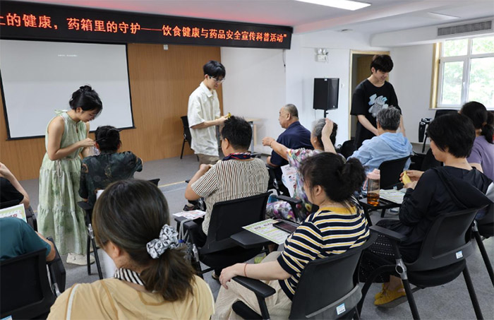 2025年8月30日,宣讲当日,队员们清晨即采购健康小礼品,于下午准时抵达社区活动室,受到居民热情欢迎。现场通过PPT讲解、传单发放、实物对比和互动答疑等多种形式,围绕饮食与用药安全等现实问题开展科普。在互动答疑环节,居民们踊跃提问,围绕“高血压该少吃哪些调味品”“降糖药和保健品能否同服”等生活中经常遇到的实际问题与队员们深入交流。现场气氛热烈,充满了温馨与信任。队员们耐心倾听、细致解答,用通俗易懂的语言化解一个个健康疑惑,真正实现了医学知识从课堂到社区、从理论到实践的暖心传递。