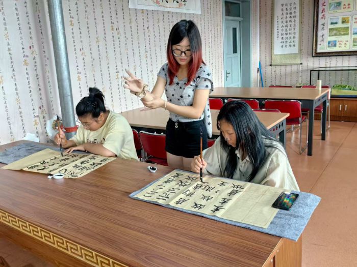拓展课程上,实践团同样倾注了无限热情与巧思。书法课上,孩子们在老师指导下临摹《玄秘塔碑》,在一笔一划中感受传统文化韵味;民族歌舞课上,朝鲜族传统歌舞被引入课堂,青春舞姿成为校园里靓丽的风景线;音乐课上,全体师生齐声高唱《追梦赤子心》,激昂歌声点燃每个人的热情。