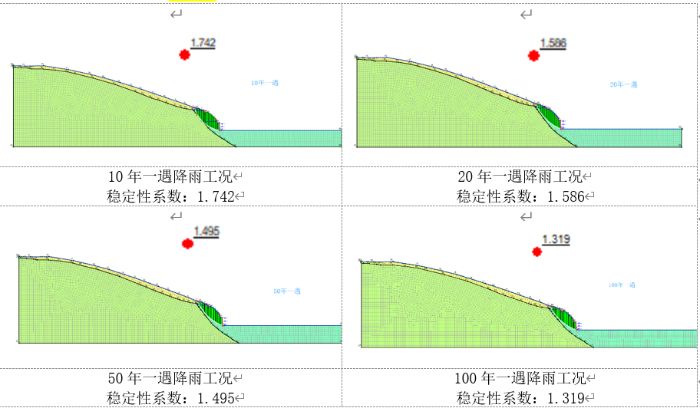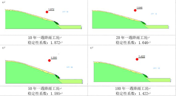 图 4 1-1′剖面降雨工况下滑坡稳定系数