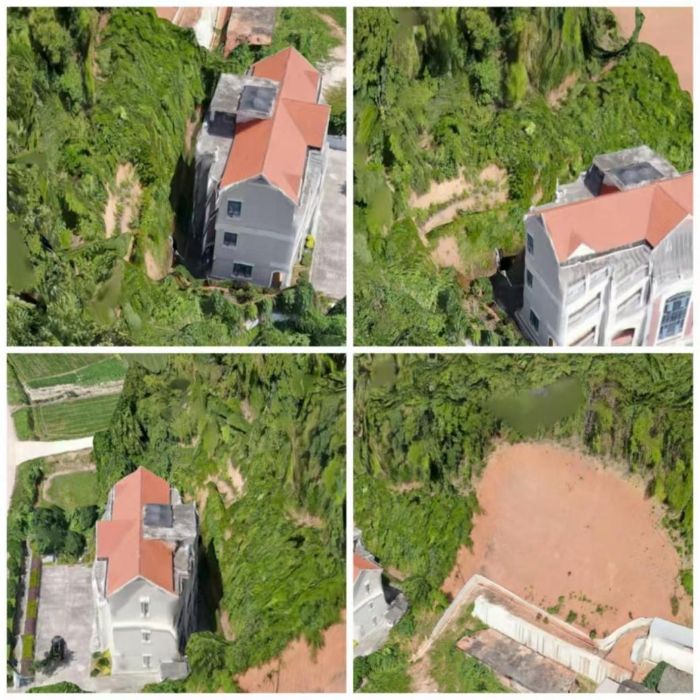 下午,团队操作无人机对谢家坳村重点切坡建房区进行了无人机三维倾斜摄影,全面了解地质灾害潜在风险区的地形地貌特征。无人机在高空盘旋,精准地获取了高精度的地形数据,为后续的边坡稳定性定量评价提供了有力支持。随后,在李德营教授的悉心指导下,团队运用Geo-studio软件开展了10年、20年、50年、100年不同降雨重现期边坡稳定性计算,并完成了一份详细的风险评估报告,制定了符合当地居民生活习惯的汛期地质灾害防控措施:住前不住后,住上不住下;地质灾害便捷减灾措施。与此同时,无人机实测数据与科研成果被纳入了当地地质灾害风险防控中,为当地的地质灾害防灾减灾提供了坚实的技术支撑。
