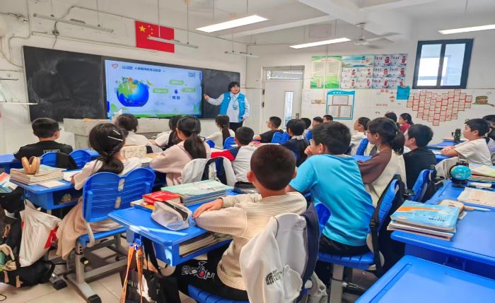 图为团队成员在教室与同学们问答互动的情况。赵佳欣 供图