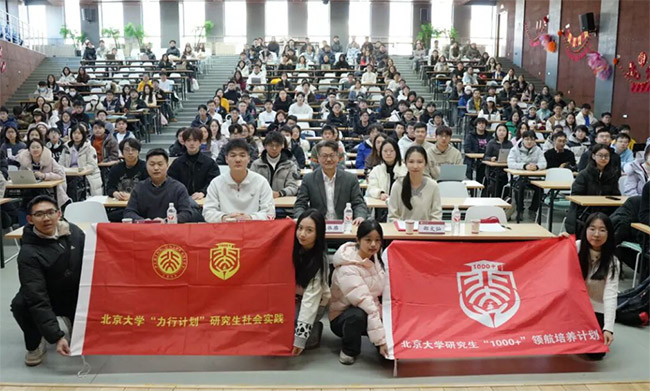 为确保实践活动扎实有效开展,1月16日上午,2026年北京大学“力行计划”研究生寒假社会实践行前培训会在政府管理学院(廖凯原楼)437报告厅举行。本次培训会特邀政府管理学院教授、城市治理研究院执行院长、首都发展研究院副院长沈体雁作专题授课,多位社会实践优秀领队代表分享经验。会议由马克思主义学院2025级博士研究生王艺瑾主持,350余名奔赴全国20个省(直辖市、自治区)、44个实践基地的学子参会。