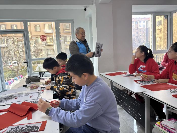 本次活动特别邀请荣成市新时代文明实践中心的非遗剪纸老师连建民莅临现场教学,居民与工作人员齐聚一堂,在剪刀起落、刻刀游走间亲身感受传统非遗的独特魅力,共同迎接新春的喜庆气象。