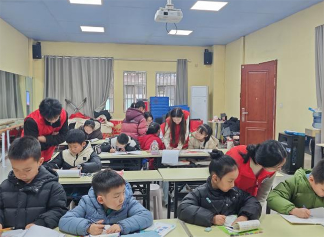 学业辅导现场,志愿者们化身“专属小老师”,针对孩子们寒假作业中的难题进行一对一讲解,耐心解答数学计算、语文阅读等方面的疑问,同时分享高效学习方法,帮助孩子们夯实学业基础,培养良好的学习习惯。孩子们踊跃提问、认真思考,在志愿者的陪伴下攻克学习难关,收获知识与成长。