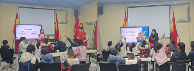 在冬季安全防护方面,实践团围绕冬季防溺水、防火防电开展专题讲解,通过情景模拟、互动问答的形式,讲解远离冰面、正确用电、火灾逃生等知识,结合“危险的事情我不做”主题分享,用真实案例让孩子们认清危险行为的危害,全面提升孩子们的冬季安全防范意识与应急能力。