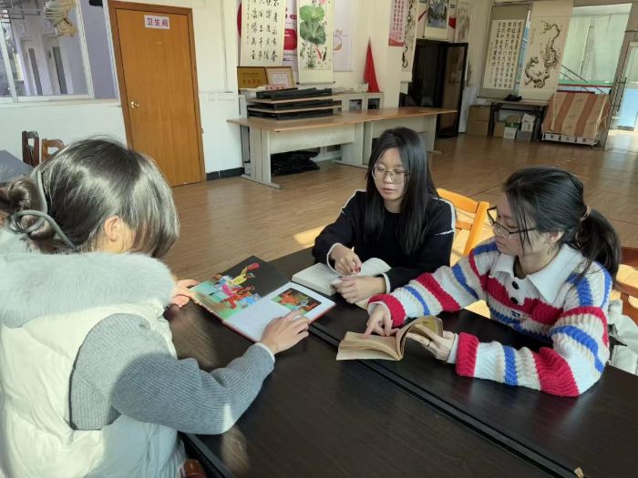 实践团首站走进永福县图书馆,开启彩调文化的历史溯源之旅。在馆藏资料中,队员们仔细翻阅彩调相关剧本、专著与文化志,系统梳理出这一民间戏曲的百年发展脉络,清晰掌握其从起源到入选国家级非遗的关键节点。通过对经典彩调剧目内容与艺术特色的深入研究,队员们不仅领略到彩调的乡土韵味,更为后续的实地调研积累了扎实的理论知识。