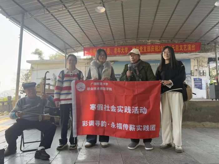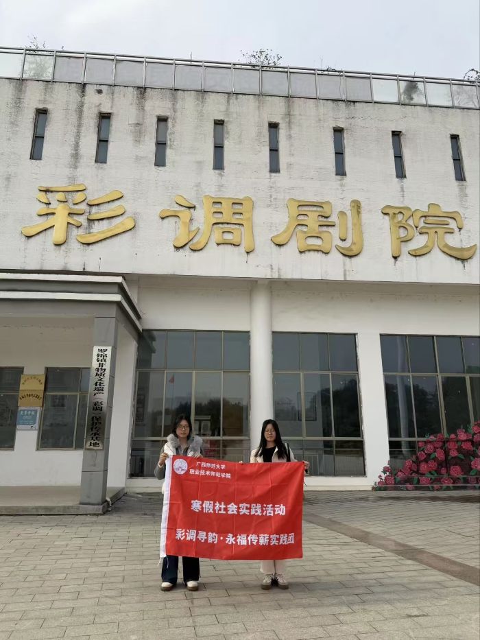 为探寻国家级非物质文化遗产彩调的传承发展路径,助力地方非遗文化活化传承,2026年1月11日至13日,广西师范大学职业技术师范学院“彩调寻韵・永福传薪”实践团赴桂林市永福县开展寒假社会实践活动。三天时间里,实践团以多样形式深入调研彩调文化,挖掘其历史价值与艺术魅力,用青年行动为非遗传承发展添砖加瓦。