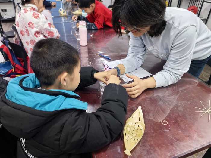 竹编课堂上,非遗文化与儿童教育碰撞出创意火花。老师系统讲解竹编历史与技法后,设计“基础小船编织”与“自由创作”双环节,在保证技能掌握的基础上激发创新潜能。孩子们用竹篾编织出小船、五角星、小帽子等实用物件,不仅锻炼了动手能力,更在非遗传承中厚植文化自信,让小学生们成为传统文化的“小小传播者”,为文化振兴埋下新的种子。