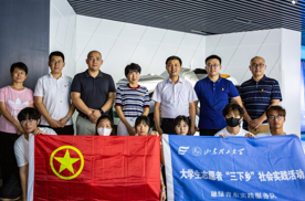 图为实践团成员与老师以及工作人员在农高区实验室农机前拍照 中国青年通讯员 李勇 摄