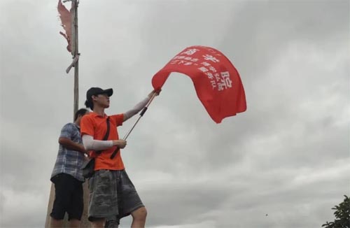 中午十一点,商学院志愿服务队成功登顶,让“商学院三下乡社会服务队”的旗帜在蓝天白云中随风飘扬。