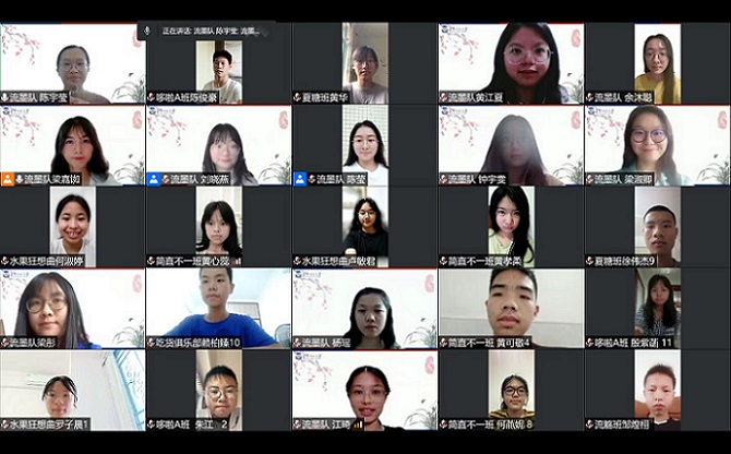 2022年8月5日下午,华南师范大学书画协会流墨实践服务队在线上举行了“流墨盛夏,梦旅同游”夏令营的结营仪式,指导老师、全体队员和学生出席活动。在仪式上,队伍展示了实践成果,师生代表分享了活动感想与收获,为本次夏令营活动画上了圆满的句号。
