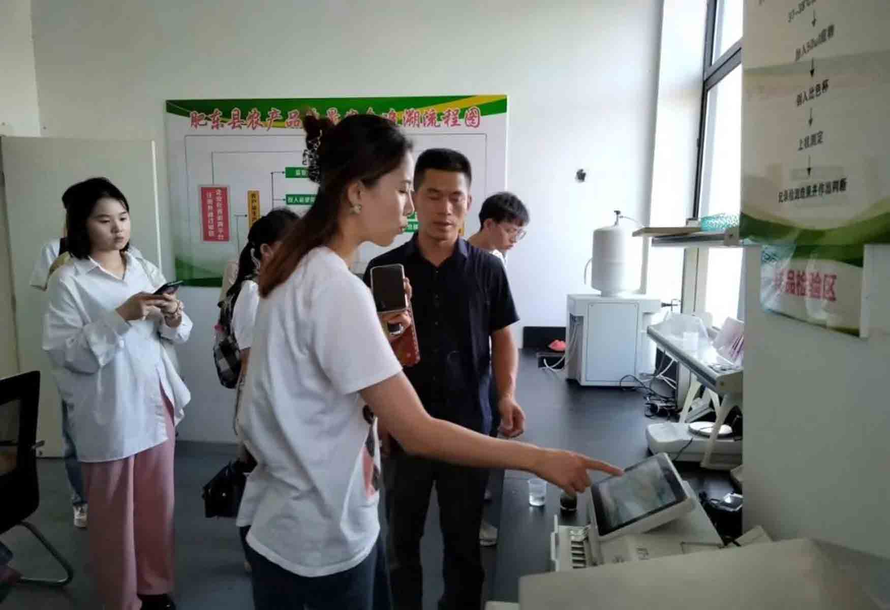 最后,师生们来到了园区的绿色蔬果质量检测中心。据园区经理胡令科介绍,园区内每发出一批蔬果,都需要进行抽样检测,检测合格后才能流通市场,若检测不合格,该批次蔬果不仅不能流通市场,而且公司还将面临数万元罚款。园区内检测设备由政府免费提供,监测数据也实时上传至政府数据库,这不仅为企业省去了大笔的设备购买和维护费用,而且保障了消费者购买的产品的质量。