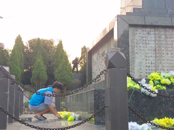 陵园内这一座座整齐的墓碑,代表着他们的忠诚,他们为革命甘愿献身的精神,不就是为了祖国的明天,祖国的将来吗?战争时期他们爬雪山、过草地,抗击倭寇,英勇战斗,历经千辛万苦,但他们从没有松懈过,为了祖国的胜利,为了后辈们能过上幸福的生活,他们甘愿献出自己宝贵的生命,我由衷的敬佩他们,深深地为他们鞠上一躬。