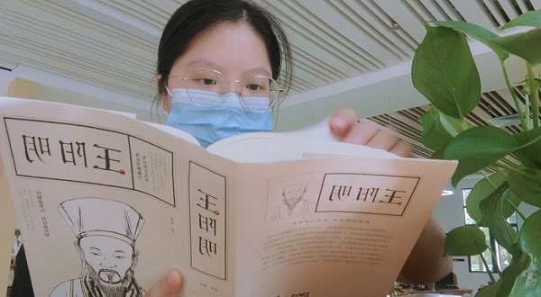 图为《地方志》授课队员在和平县图书馆查阅“立县之父”王阳明的相关资料,为授课作准备