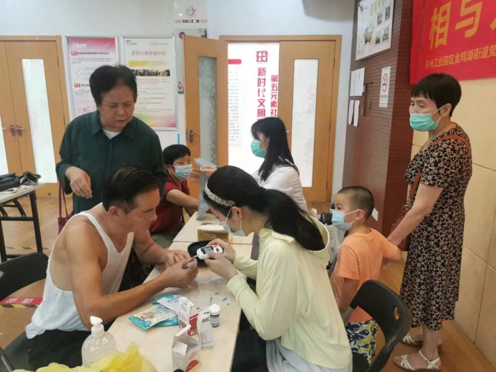 习近平总书记在十九大报告中指出,人民健康是民族昌盛和国家富强的重要标志。近年来,随着中国的医疗水平不断进步,流行病的治疗已经步入新的阶段,治愈率大大提高。然而,人民群众对于流行病知识了解的匮乏依旧是流行病防治的一大阻碍。为了积极响应“健康中国”战略,让社区居民更加了解自己的身体状况,宣传高血压、高血糖等流行病的相关知识,苏州大学苏州医学院“相与为医,社萦党音”党员志愿服务团部分成员于2022年8月共赴江苏省苏州市工业园区第五元素社区,开展义诊活动,为社区居民测量血压、血糖,并根据检测结果有针对性地给出推荐饮食与生活习惯建议。“上医治未病。”健康管理的最高境界,就是依靠自己“防”病。本次义诊旨在让社区居民更加关注到自身的健康状况,有意识地养成科学、文明、健康的生活方式,并进一步加深对流行病的认识。