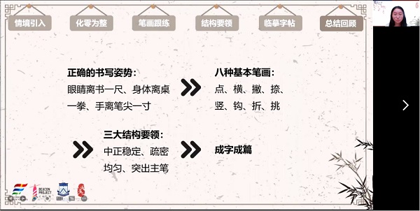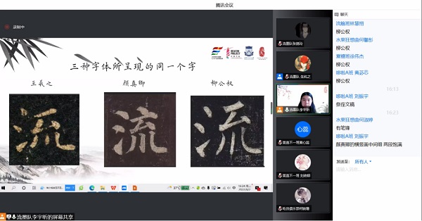 图为流墨实践服务队李宇昕线上讲授《百变楷书》课程
